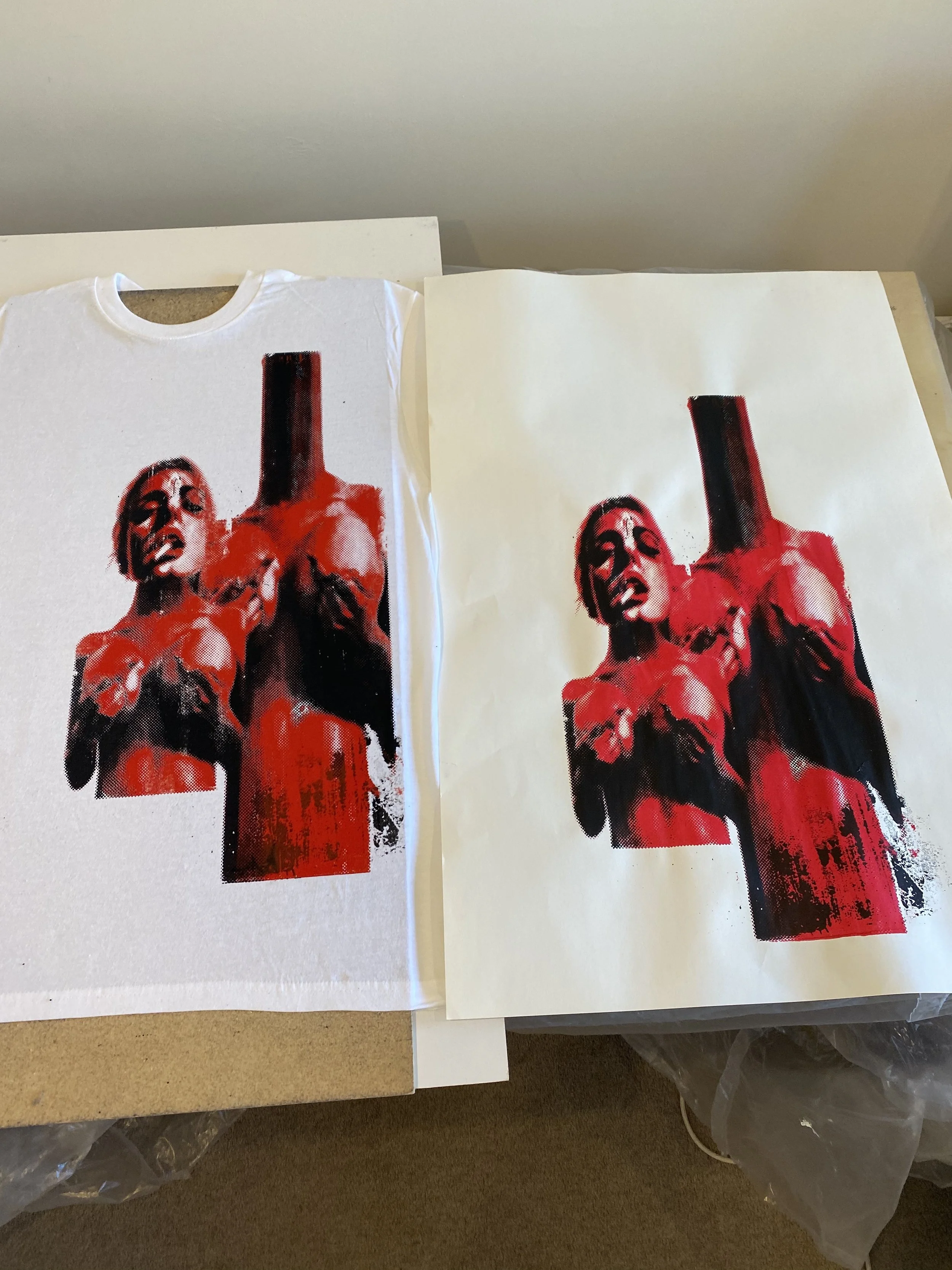 I was asked by some friends to create a shirt for them which I had free creative control over as long as it had “naked girls and rude fingers”, so I did that. I used the fun project to explore designing with halftones in mind.
